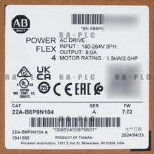Allen Bradley 22A-B8P0N104 PowerFlex 4 1.5 kW 2 Hp AC Drive 3PH, 8 Amps
