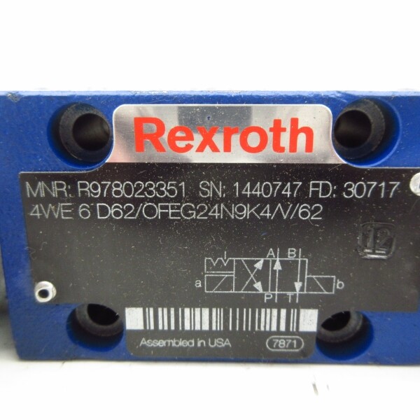 REXROTH 4WE6D62/OFEG24N9K4/V/V62 R978023351 24VDC 1.25A